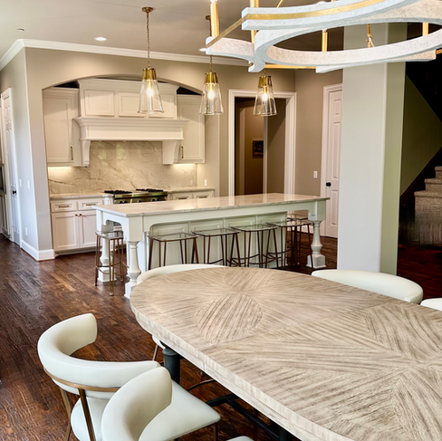 From the moment you step into the space, it’s the light that steals the show. Expansive windows flood the kitchen and dining space with soft, natural daylight, making the room feel open, fresh, and connected to the outdoors. The palette, anchored in warm neutrals and soft textures, amplifies the brightness. This intentional use of light turns everyday tasks like prepping dinner or sipping morning coffee into simple, sunlit rituals.
