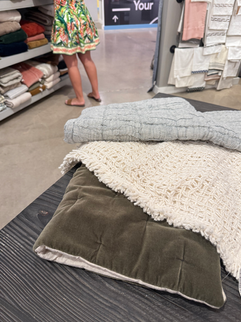 Rugs are often the foundation of a design they define rooms, add texture, and pull a space together. Seeing and touching these rugs firsthand helps ensure the perfect match in color, weave, and size. There are also showrooms where we choose the perfect bedding. Pairing different colors, textures, and patterns to create the perfect space.
